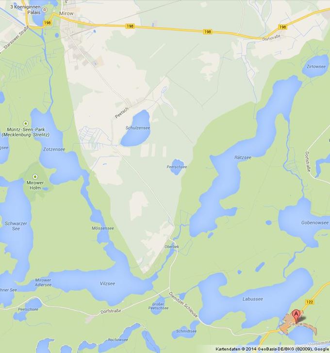 Die Tour geht Richtung Süden unter der B 198 hindurch. Die Mirower Schleuse wird steuerbord liegen gelassen und es wird die alte Eisenbahnbrücke Richtung Wittstock passiert. Mit dem Kanal-Ende wird der Zotzensee erreicht .Es schließt sich der Mössensee an. Bei dem Land auf der West-Seite handelt es sich um den Mirower Holm, einer Halbinsel. Auf den Mössensee folgt der Vilzsee. Hier beginnt die eigentliche Umfahrt. Nach dem Durchfahren der Diemitzer Schleuse - gerade in den Sommermonaten ist hier mit Wartezeit zu rechnen - gelangt man zuerst auf den Peetschsee, dann folgt der Labussee und man hält den Kurs östlich. Kurz vor See-Ende geht es backbord in die Dollbek. Nachdem der Gobenowsee erreicht ist, den Kurs Nord halten und in den Drosedower Bach, einem landschaftlich sehr reitzvollen Abschnitt, einfahren. Es folgt der Rätzsee, der in nahezu voller Länge Richtung Südwest durchfahren wird. Ca. 300 m bevor die Anlegestelle des Zeltplatzes erreicht werden würde, steuerbord in die Oberbek steuern. Jetzt folgt auf 500 m Länge ein teilweise sehr schmaler und flacher Abschnitt und die Skull müssen wechselseitig lang gemacht werden. Nach dem Fleether Mühle erreicht wurde, müssen die Boote aus dem Wasser gehoben und umgetragen werden. Die Mühle wurde 2001 durch einen Brand zerstört, es befindet sich aber hinter dem Gebäude an der Einsetz- Stelle ein Biergarten, der zum Verweilen einlädt. Nachdem sich die Boote wieder im Wasser befinden und das Bier ausgetrunken wurde, folgt man noch 600 m der Oberbek und erreicht dann wieder die Vilz, den Startpunkt der eigentlichen Umfahrt. Die Tour kann natürlich auch in entgegengesetzter Richtung unternommen werden.
